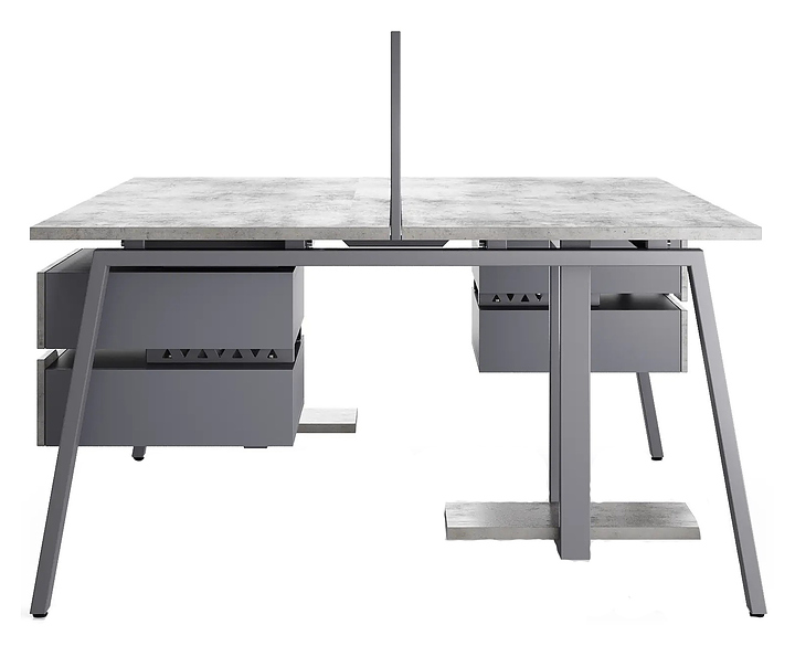 Офисный стол Кобор Стол A/2-100/140 graphite/chicago используется в офисных помещениях и кабинетах руководителей. Модель оснащена А-образными опорами. Каркас выполнен из металла, выкрашенного в цвет графит муар (RAL7024) , столешница – из ламинированной древесно-стружечной плиты (ЛДСП) цвета бетон чикаго (F186 ST9). Дополнительные характеристики: