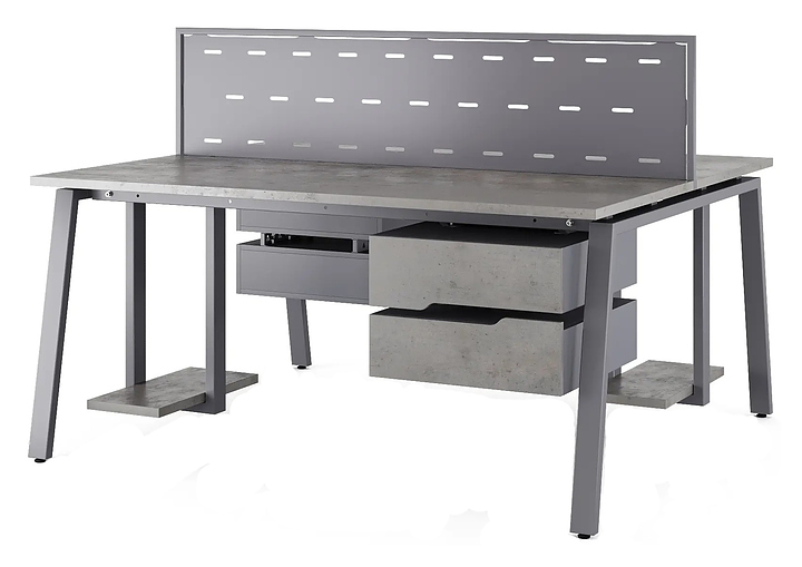 Офисный стол Кобор Стол A/2-180/140 graphite/chicago используется в офисных помещениях и кабинетах руководителей. Модель оснащена А-образными опорами. Каркас выполнен из металла, выкрашенного в цвет графит муар (RAL7024) , столешница – из ламинированной древесно-стружечной плиты (ЛДСП) цвета бетон чикаго (F186 ST9). Дополнительные характеристики:
