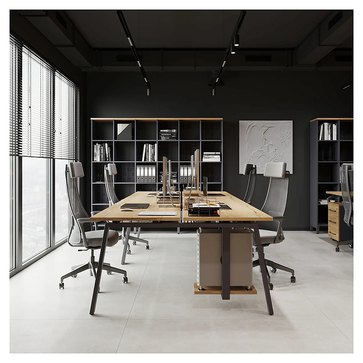 Офисный стол Кобор Стол A/2-140/120 graphite/natural используется в офисных помещениях и кабинетах руководителей. Модель оснащена А-образными опорами. Каркас выполнен из металла, выкрашенного в цвет графит муар (RAL7024), столешница – из ламинированной древесно-стружечной плиты (ЛДСП) цвета дуб натуральный (H1180 ST37). Дополнительные характеристики: