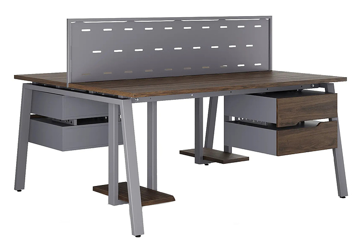 Офисный стол Кобор A/2-80/120 graphite/charlston используется в офисных помещениях и кабинетах руководителей. Модель оснащена А-образными опорами. Каркас выполнен из металла, выкрашенного в цвет графит муар (RAL7024), столешница – из ламинированной древесно-стружечной плиты (ЛДСП) цвета дуб чарльстон (H3154 ST36). Дополнительные характеристики: