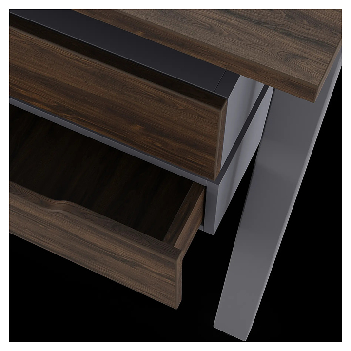 Офисный стол Кобор A/2-140/120 graphite/charlston используется в офисных помещениях и кабинетах руководителей. Модель оснащена А-образными опорами. Каркас выполнен из металла, выкрашенного в цвет графит муар (RAL7024), столешница – из ламинированной древесно-стружечной плиты (ЛДСП) цвета дуб чарльстон (H3154 ST36). Дополнительные характеристики: