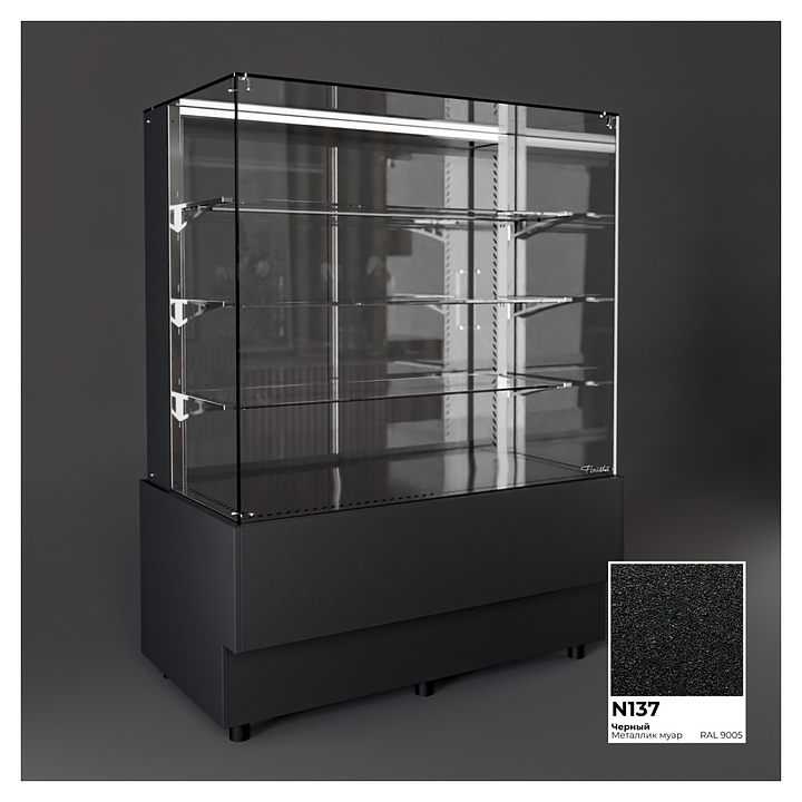 Напольная холодильная витрина Finist AIR A-13-7-163 среднетемпературная предназначена для экспозиции и временного хранения кондитерских изделий. Доступ к продукции осуществляется с помощью раздвижных дверей купе. Конструкция позволяет размещать продукцию на трех стеклянных полках и дне витрины. В стандартном оснащении комплектуется боковыми стеклами и фасадами, которые имеют съемную конструкцию. Корпус изготовлен из крашеной стали. Среднетемпературная напольная холодильная витрина AIR изготавливается по размерам заказчика. Фасады могут быть окрашены в любой цвет по каталогу RAL или обшиты МДФ. Особенности: