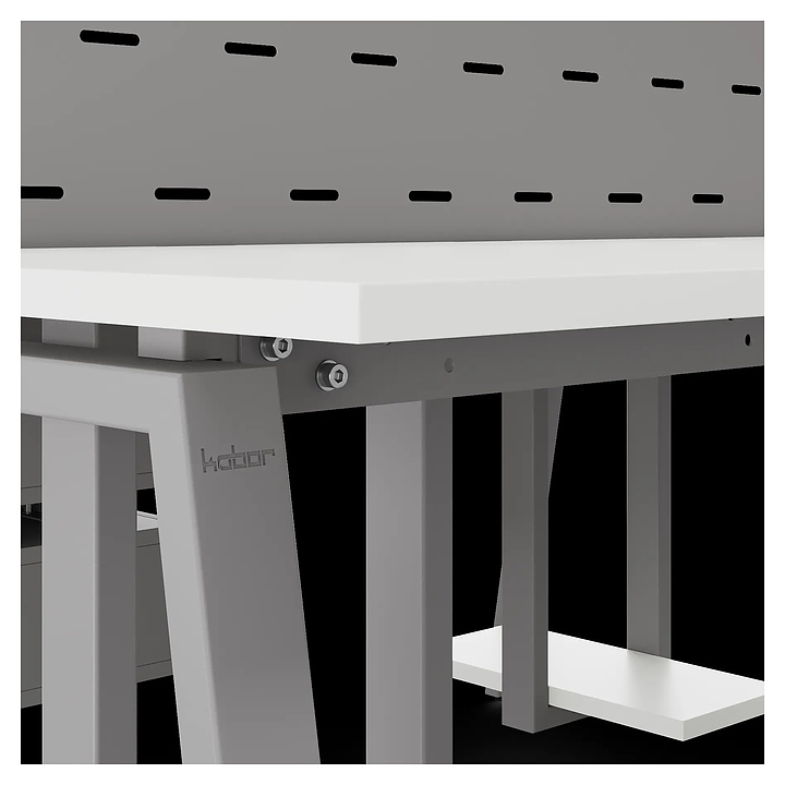 Офисный стол Кобор A/2-140/120 aluminum/premium используется в офисных помещениях и кабинетах руководителей. Модель оснащена А-образными опорами. Каркас выполнен из металла, выкрашенного в цвет алюминиевый металлик (RAL9006), столешница – из ламинированной древесно-стружечной плиты (ЛДСП) цвета белый премиум (W1000 ST9). Дополнительные характеристики: