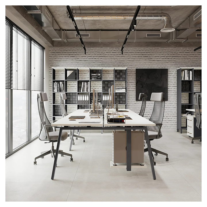 Офисный стол Кобор A/2-80/160 aluminum/premium используется в офисных помещениях и кабинетах руководителей. Модель оснащена А-образными опорами. Каркас выполнен из металла, выкрашенного в цвет алюминиевый металлик (RAL9006), столешница – из ламинированной древесно-стружечной плиты (ЛДСП) цвета белый премиум (W1000 ST9). Дополнительные характеристики: