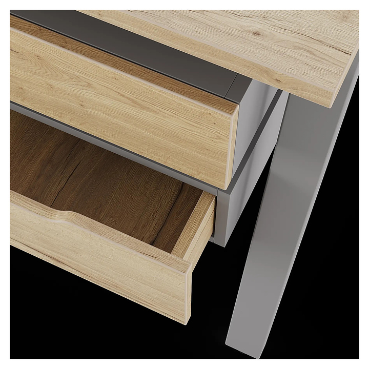 Офисный стол Кобор A/2-140/120 aluminum/natural используется в офисных помещениях и кабинетах руководителей. Модель оснащена А-образными опорами. Каркас выполнен из металла, выкрашенного в цвет алюминиевый металлик (RAL9006), столешница – из ламинированной древесно-стружечной плиты (ЛДСП) цвета дуб натуральный (H1180 ST37). Дополнительные характеристики: