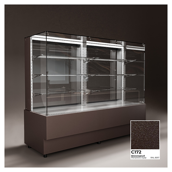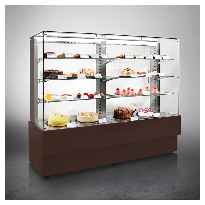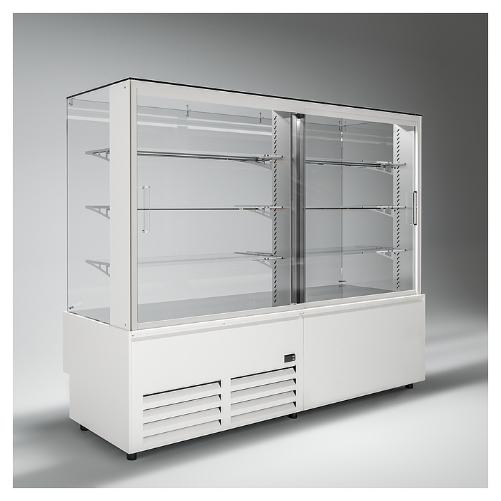 Напольная холодильная витрина Finist AIR DOUBLE AD-200-7-163 среднетемпературная предназначена для экспозиции и временного хранения кондитерских изделий. Доступ к продукции осуществляется с помощью раздвижных дверей купе. Конструкция позволяет размещать продукцию на трех стеклянных полках и дне витрины. В стандартном оснащении комплектуется боковыми стеклами и фасадами, которые имеют съемную конструкцию. Корпус изготовлен из крашеной стали. Среднетемпературная напольная холодильная витрина AIR изготавливается по размерам заказчика. Фасады могут быть окрашены в любой цвет по каталогу RAL или обшиты МДФ. Особенности: