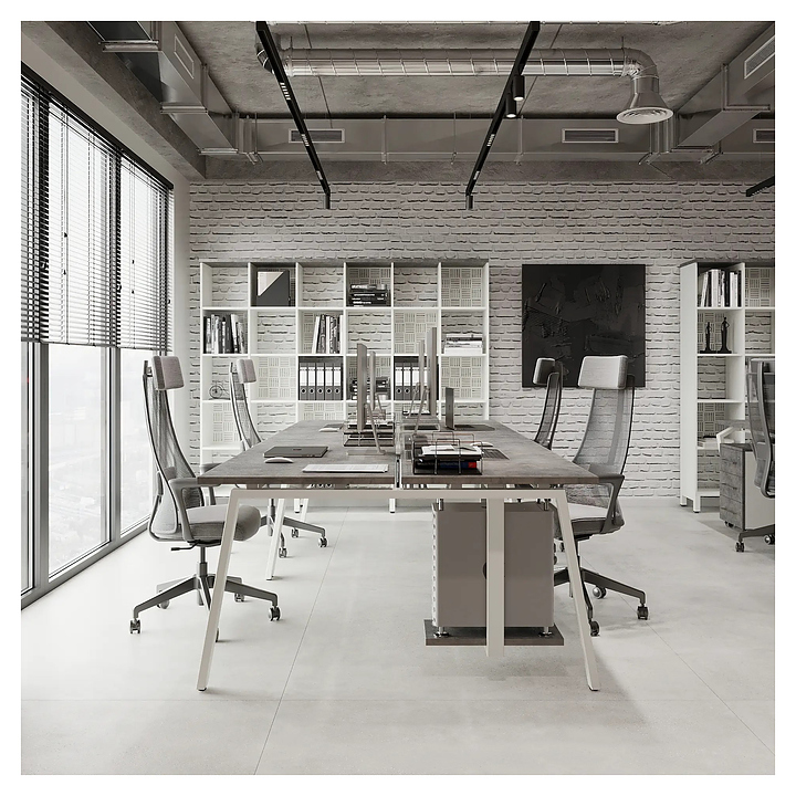 Офисный стол Кобор A/2-180/120 white/chicago используется в офисных помещениях и кабинетах руководителей. Модель оснащена А-образными опорами. Каркас выполнен из металла, выкрашенного в цвет белый муар (RAL9016), столешница – из ламинированной древесно-стружечной плиты (ЛДСП) цвета бетон чикаго (F186 ST9). Дополнительные характеристики: