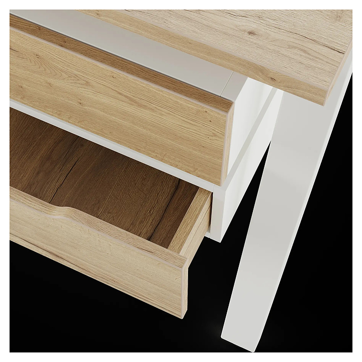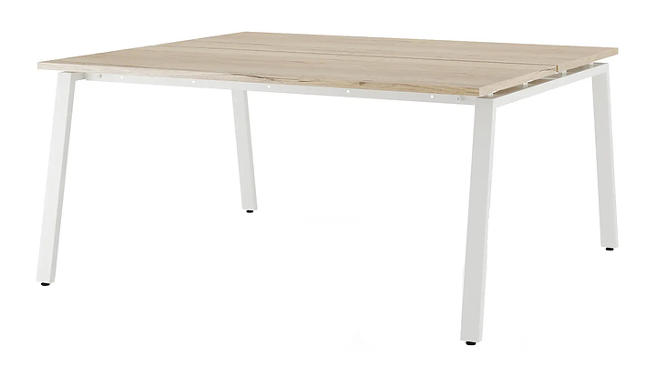 Офисный стол Кобор A/2-120/120 white/natural используется в офисных помещениях и кабинетах руководителей. Модель оснащена А-образными опорами. Каркас выполнен из металла, выкрашенного в цвет белый муар (RAL9016), столешница – из ламинированной древесно-стружечной плиты (ЛДСП) цвета дуб натуральный (H1180 ST37). Дополнительные характеристики: