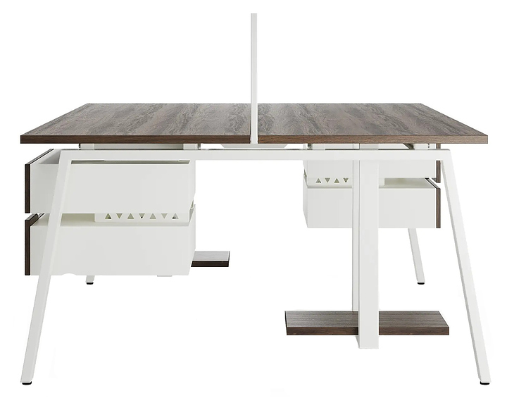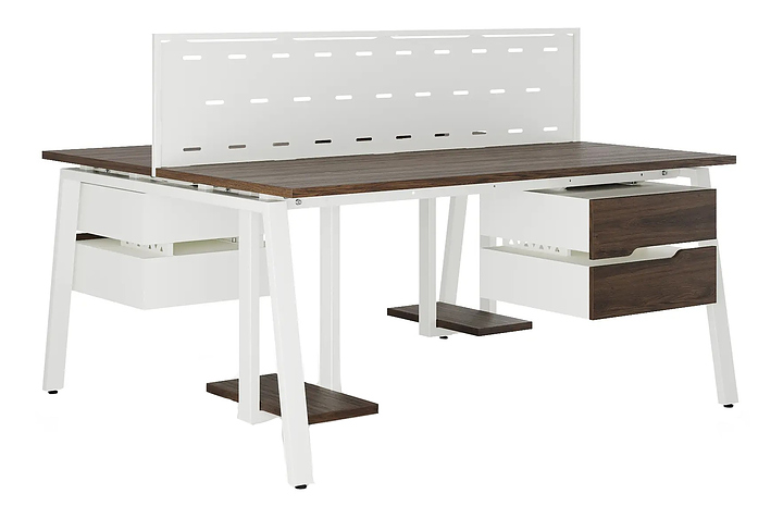 Офисный стол Кобор A/2-120/120 white/charlston используется в офисных помещениях и кабинетах руководителей. Модель оснащена А-образными опорами. Каркас выполнен из металла, выкрашенного в цвет белый муар (RAL9016), столешница – из ламинированной древесно-стружечной плиты (ЛДСП) цвета дуб чарльстон (H3154 ST36). Дополнительные характеристики: