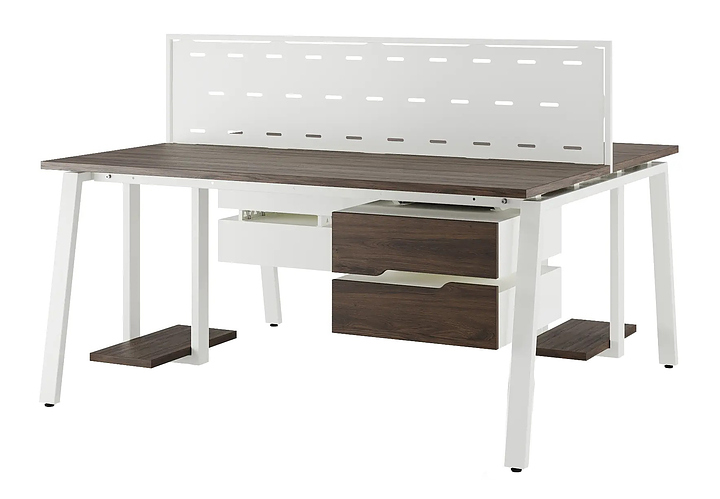 Офисный стол Кобор A/2-180/120 white/charlston используется в офисных помещениях и кабинетах руководителей. Модель оснащена А-образными опорами. Каркас выполнен из металла, выкрашенного в цвет белый муар (RAL9016), столешница – из ламинированной древесно-стружечной плиты (ЛДСП) цвета дуб чарльстон (H3154 ST36). Дополнительные характеристики: