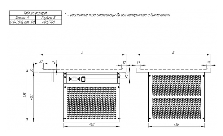 Поверхность холодильная встраиваемая Finist STATIC table ПХВо-13/7 с бортом
