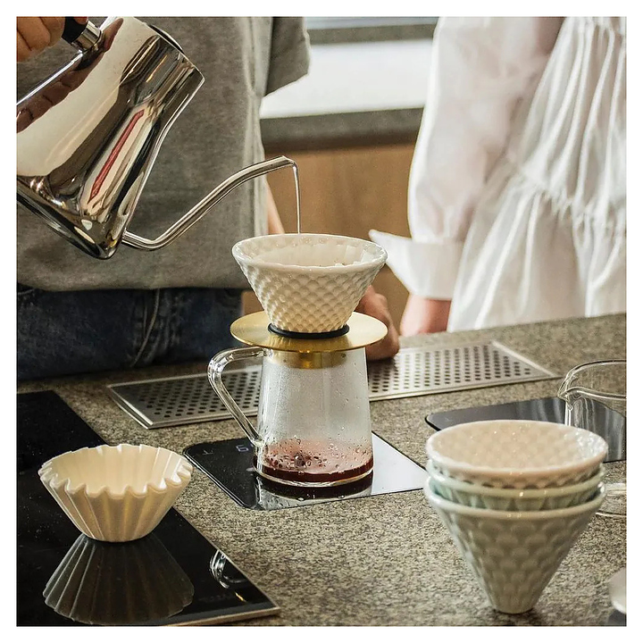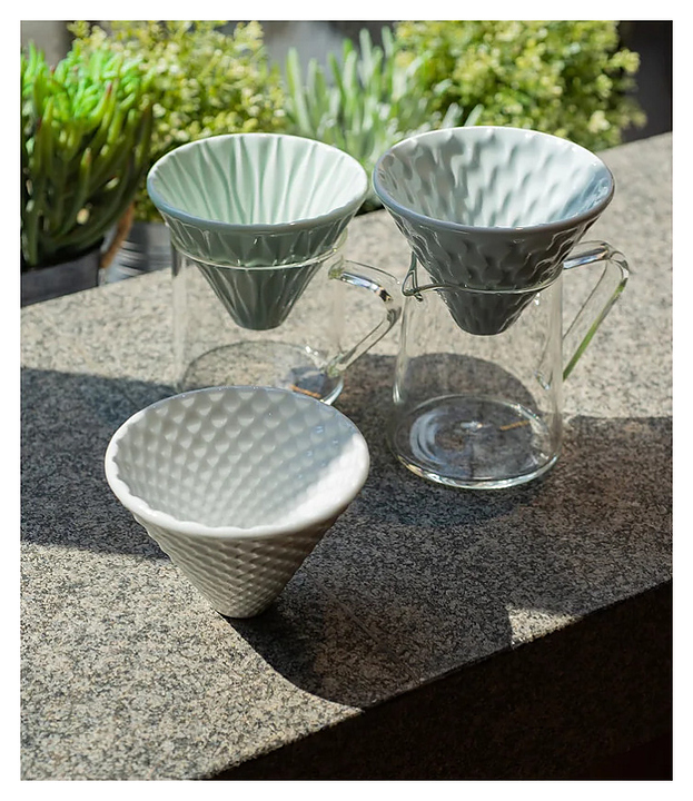 Воронка для капельницы Loveramics Brewers Mellow Dripper C099-15ACL мягкого уровня заваривания. Специальная рифленая поверхность воронки влияет на скорость потока воды и, следовательно, на время приготовления кофе. Эта воронка создаёт мягкий уровень заваривания за счёт высокой скорости прохождения жидкости. Мы предлагаем три стильные воронки для капельных кофеварок разных цветов и с разным покрытием. Эти воронки придают процессу заваривания элегантность. Изделие выполнено из фарфора, поверхность которого вручную покрывается глазурью, что придает каждому предмету индивидуальность. Цена указана за 1 шт. Особенности:
