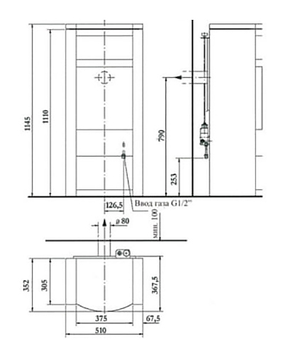 Камин газовый Karma ABSOLUTE W NG коаксиальный дымоход