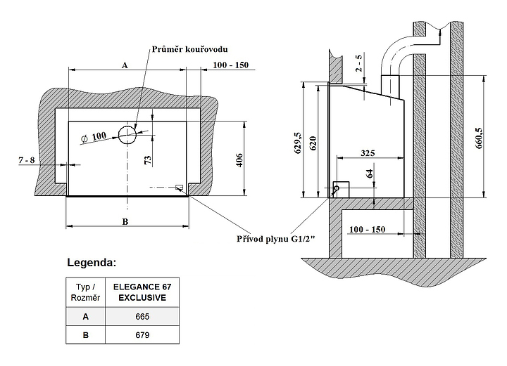 Камин газовый Karma ELEGANCE 67 EXCLUSIVE Medium line 30 антрацит