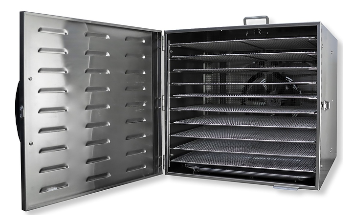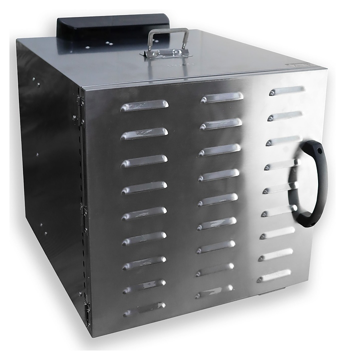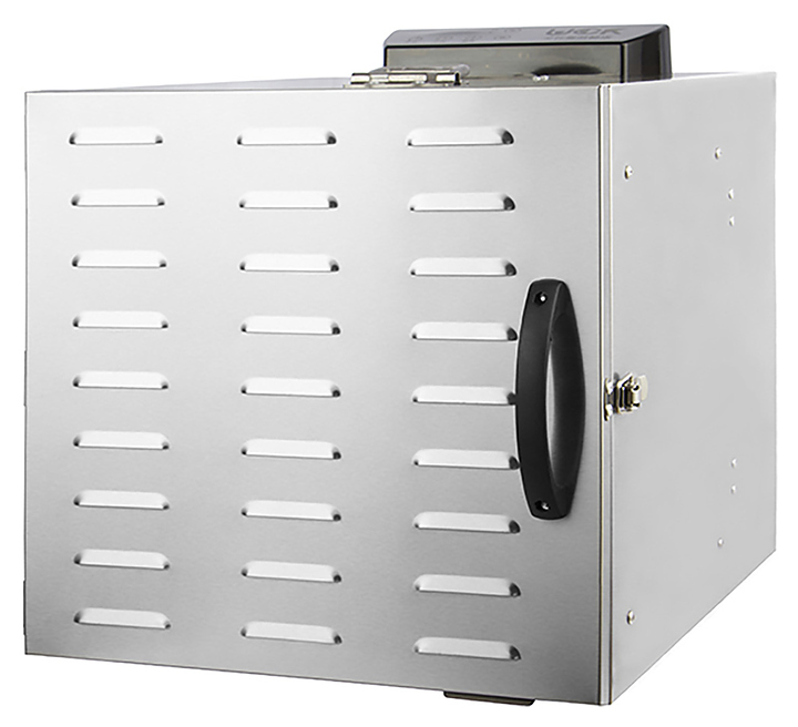 Дегидратор Rosso HFD-10 используется на предприятиях общественного питания и торговли для сушки овощей, фруктов, ягод, грибов и трав, а также вяления рыбы, расстойки теста и приготовления сухариков и йогурта. Модель оснащена камерой с 10 уровнями направляющих для решеток с продукцией, расположенными в задней стенке кольцевым электронагревателем и вентилятором, распашной дверью и электромеханическим управлением. Корпус и решетки выполнены из нержавеющей стали. В комплект поставки входят 10 съемных решеток. Особенности: