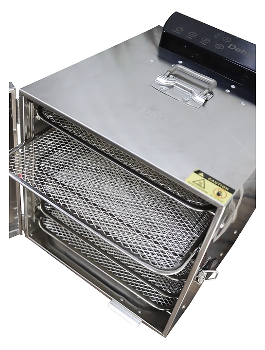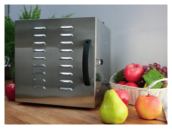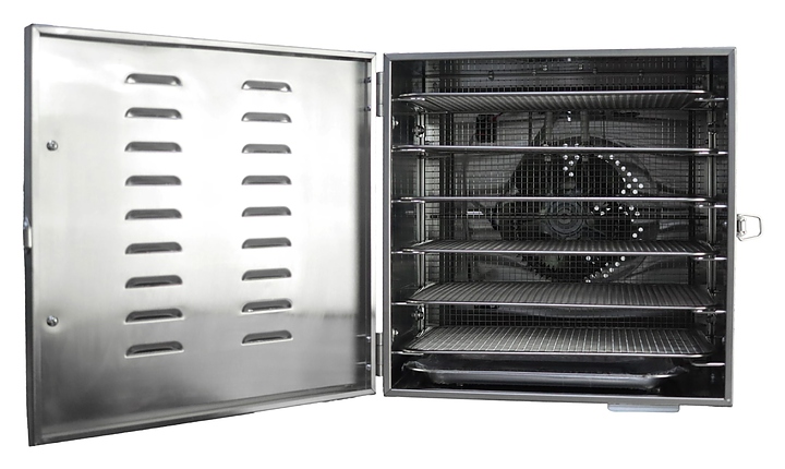 Дегидратор Hualian HFD-6 используется на предприятиях общественного питания и торговли для сушки овощей, фруктов, ягод, грибов и трав, а также вяления рыбы, расстойки теста и приготовления сухариков и йогурта. Модель оснащена камерой с 6 уровнями направляющих для решеток с продукцией, расположенными в задней стенке кольцевым электронагревателем и вентилятором, распашной дверью и электромеханическим управлением. Корпус и решетки выполнены из нержавеющей стали. В комплект поставки входят 6 съемных решеток. Особенности: