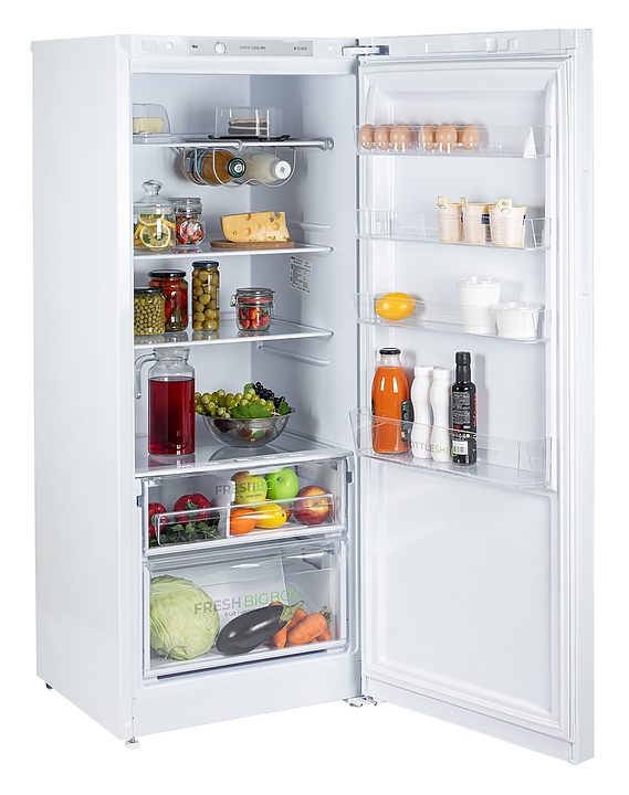 Холодильник Бирюса Б-6142 предназначен для кратковременного хранения свежих пищевых продуктов и охлаждения напитков. Модель оснащена глухой дверью, LED-освещением, 5 полками и 2 ящиками. Полки выполнены из стекла и пластика. В комплект поставки входят масленка, подвесная полка для бутылок, подставка для яиц, разделитель для фруктов и овощей. Особенности: