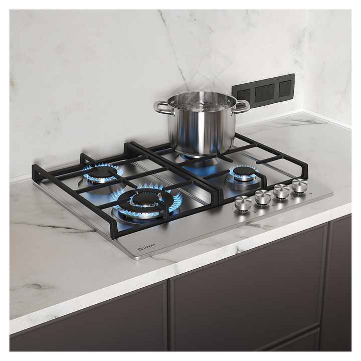 Газовая варочная панель Libhof GS-604 предназначена для приготовления большого ассортимента блюд в домашних условиях. Модель оснащена 4 высококачественными конфорками различной мощности, 2 опорными решетками, кабелем питания и расположенной в правой части фронта механической панелью управления с 4 поворотными переключателями. Корпус выполнен из стали, рабочая поверхность – из высококачественной нержавеющей стали с сатинированной серебристой поверхностью, решетки – из чугуна, конфорки – из алюминия, крышки конфорок – из углеродистой стали, ручки переключатей цилиндрической формы – из термостойкого материала с серебристой поверхностью. В комплект поставки входят монтажные скобы с фиксирующими винтами, уплотнительная лента, колено с 2 прокладками для подключения газа, инструкция по эксплуатации, гарантийный талон и заводская упаковка. Особенности:
