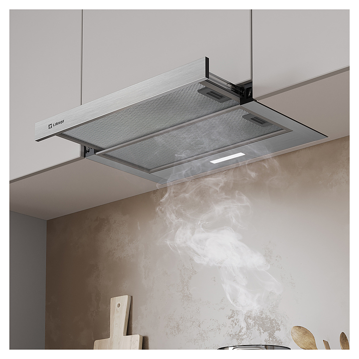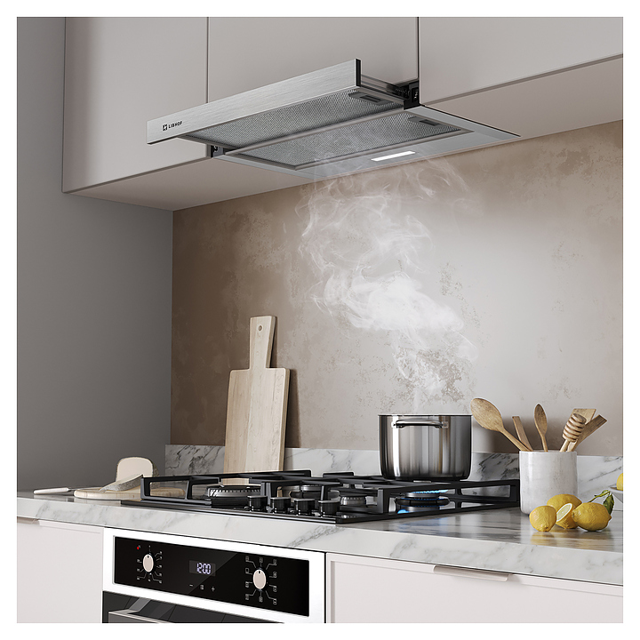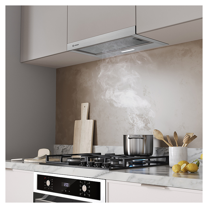 Встраиваемая кухонная вытяжка Libhof LH-0960 silver предназначена для очистки воздуха от продуктов горения, копоти и запахов в процессе приготовления пищи путем принудительной вентиляции в домашних условиях. Модель оснащена вентилятором с электродвигателем, кабелем питания с вилкой, прямоугольным светодиодным светильником и электромеханической панелью управления с переключателями колыбельного типа. Корпус прямоугольно ориентированной формы выполнен из высококачественной стали с термостойким покрытием эмалью серебристого оттенка, жироулавливающий фильтр – из алюминия. В комплект поставки входят набор монтажных креплений, 2-лепестковый антивозвратный клапан, инструкция по эксплуатации, гарантийный талон и заводская упаковка. Особенности: