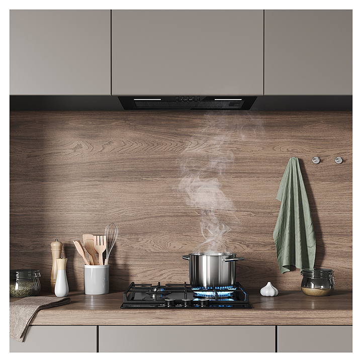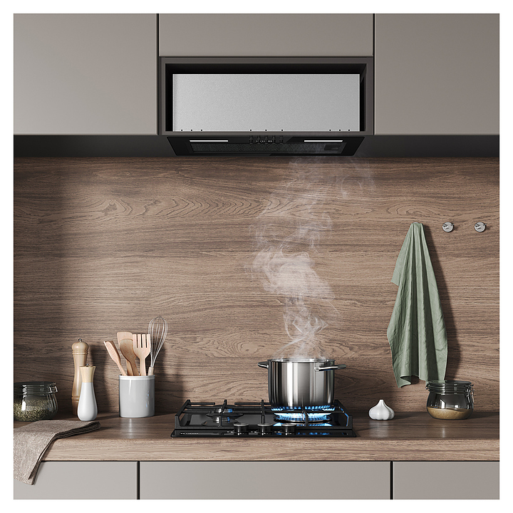 Встраиваемая кухонная вытяжка Libhof LB-0852 black предназначена для очистки воздуха от продуктов горения, копоти и запахов в процессе приготовления пищи путем принудительной вентиляции в домашних условиях. Модель оснащена вентилятором с электродвигателем, прямоугольным 2 светодиодными светильниками, кабелем питания с вилкой и панелью управления с нажимными клавишами. Корпус прямоугольно ориентированной формы выполнен из высококачественной стали с термостойким покрытием эмалью черного цвета, жироулавливающий фильтр – из алюминия, фурнитура с черной поверхностью. В комплект поставки входят набор монтажных креплений, 2-лепестковый антивозвратный клапан, шаблон для монтажа, инструкция по эксплуатации, гарантийный талон и заводская упаковка. Особенности: