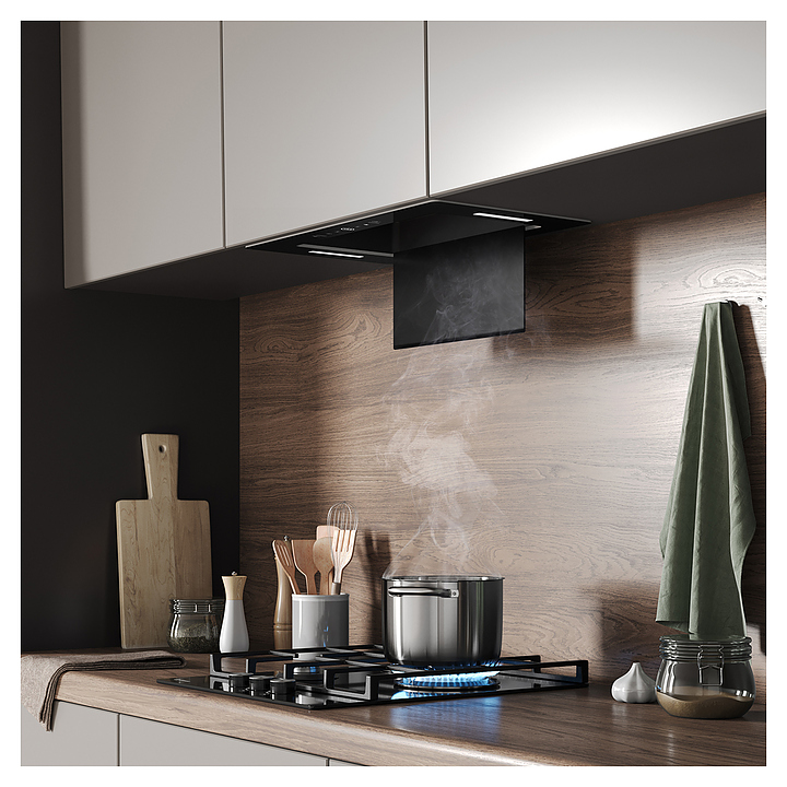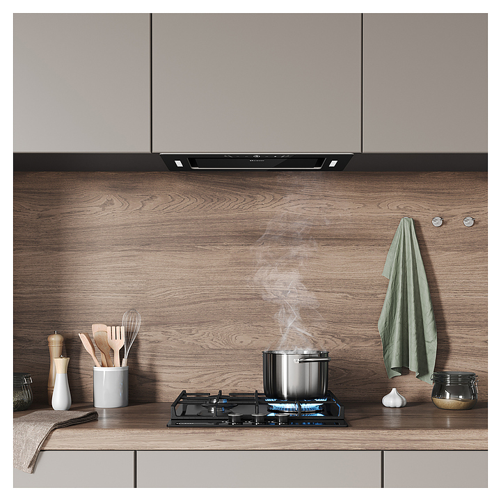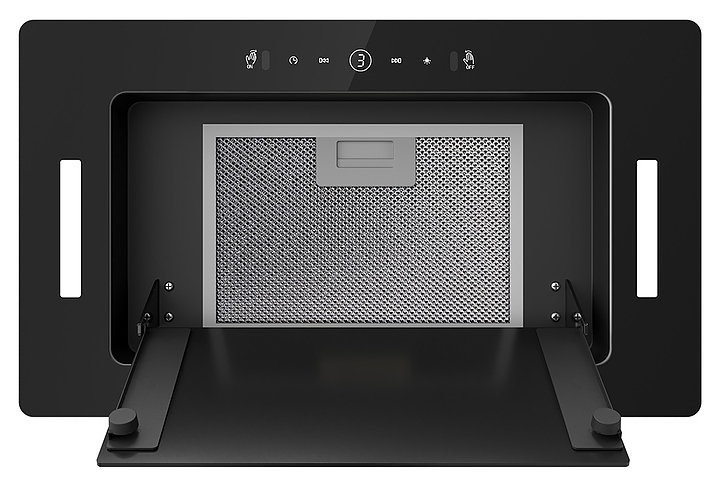 Встраиваемая кухонная вытяжка Libhof LB-0652 black предназначена для очистки воздуха от продуктов горения, копоти и запахов в процессе приготовления пищи путем принудительной вентиляции в домашних условиях. Модель оснащена вентилятором с электродвигателем, откидной крышкой, 2 прямоугольми светодиодными светильниками, кабелем питания с вилкой, панелью управления с сенсорными клавишами и цифровым дисплеем индикации. Корпус выполнен из высококачественной стали с термостойким покрытием эмалью черного цвета, жироулавливающий фильтр – из алюминия. В комплект поставки входят набор монтажных креплений, 2-лепестковый антивозвратный клапан, шаблон для монтажа, инструкция по эксплуатации, гарантийный талон и заводская упаковка. Особенности: