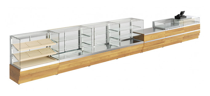 Кассовый прилавок Refettorio RKT12A используется на предприятиях общественного питания и торговли для установки кассового аппарата для последующего расчета с клиентами. Модель оснащена металлической столешницей, витриной для декора и выдвижным ящиком. Столешница выполнена из металла, фасад - из ламинированного МДФ. Особенности: