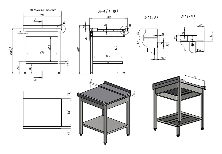 Стол для чистой посуды KAYMAN СПМ-322/0707 используется на предприятиях общественного питания и торговли совместно с посудомоечными машинами TATRA TW.H50+DR и TW.H50+DR+DD. Модель оснащена разборным каркасом из трубы, направляющими, плоским бортом и обвязкой с 4 сторон. Стол устанавливается слева от оборудования и имеет крепление на правой части. Столешница выполнена из нержавеющей стали AISI 304, каркас - из нержавеющей стали AISI 430.