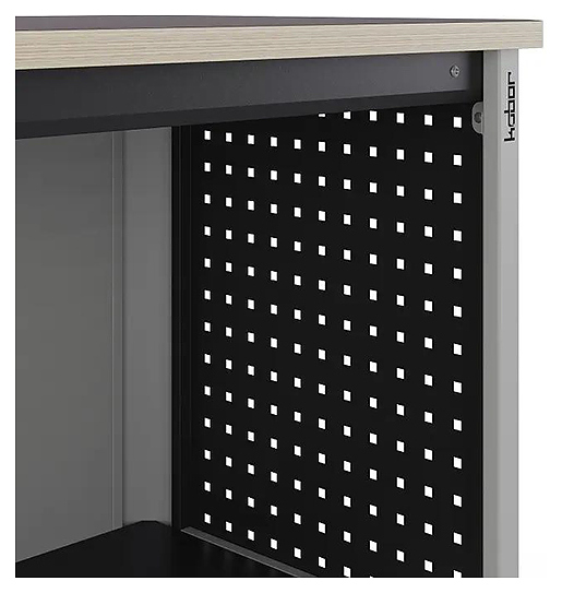 Бестумбовый верстак Кобор Expert MW-100/70 предназначен для выполнения сборочных, ремонтных, слесарных, монтажных и других видов работ на производстве, в сервисных центрах, мастерских, гаражах и в образовательных учреждениях для практических занятий. Рама обладает высокой устойчивостью благодаря опорным элементам, перемычкам и боковым перфопанелям. Столешница выполнена из ламинированной фанеры, отличающейся прочностью и долговечностью. Особенности: