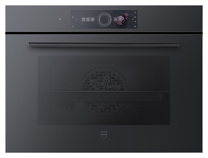 Встраиваемый духовой шкаф V-ZUG Combair V6000 45 C6T-21050 предназначен для приготовления широкого ассортимента блюд в гостиницах, офисах и домашних условиях. Модель оснащена камерой с расположенными в задней стенке вентилятором и кольцевым нагревательным элементом, верхним и нижним нагревательными элементами, верхним грилем, 2 боковыми стойками с 3 уровнями направляющих для противней, откидной дрерью со смотровым окном и уплощенной горизонтальной рукояткой, кабелем питания с евровилкой (Shuko), расположенным на верхней фронтальной панели полноцветным графическим дисплеем высокого разрешения с сенсорными элементами управления, символьными, текстовыми и цифровыми сегментами индикации. Корпус выполнен из стали, верхняя панель и дверь с полным фронтальным остеклением черным зеркальным стеклом без винтового крепежа, рукоятка – из цельного куска алюминия с черной поверхностью, противень – из стали с покрытием эмалью легкой очистки TopClean.