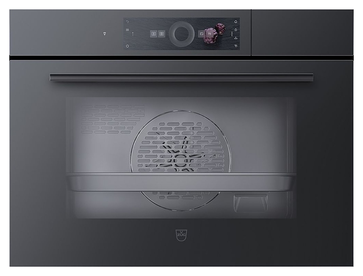 Встраиваемый духовой шкаф V-ZUG CombiSteamer V6000 45 CS6T-23032 предназначен для приготовления широкого ассортимента блюд в гостиницах, офисах и домашних условиях. Модель оснащена камерой с расположенными в задней стенке вентилятором и кольцевым нагревательным элементом, верхним и нижним нагревательными элементами, верхним грилем, парогенератором, 2 боковыми стойками с 4 уровнями направляющих для противней, откидной дрерью со смотровым окном и уплощенной горизонтальной рукояткой, кабелем питания с евровилкой (Shuko), расположенными на верхней фронтальной панели выдвижным отсеком со съемным резервуаром для воды и полноцветным графическим дисплеем высокого разрешения с сенсорными элементами управления, символьными, текстовыми и цифровыми сегментами индикации. Корпус выполнен из стали, верхняя панель и дверь с полным фронтальным остеклением черным зеркальным стеклом без винтового крепежа, рукоятка – из цельного куска алюминия с черной поверхностью, внутренняя облицовка камеры – из нержавеющей стали, противень для выпечки – из стали с покрытием эмалью легкой очистки DualEmaille, противни для приготовления на пару – из нержавеющей стали.