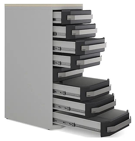 Тумба Кобор Expert MT/3-70/64 80B предназначена для выполнения сборочных, ремонтных, слесарных, монтажных и других видов работ на производстве, в сервисных центрах, мастерских, гаражах и в образовательных учреждениях для практических занятий. Модель оснащена 8 выдвижными ящиками, которые гарантируют комфортное использование и позволяют хранить необходимые инструменты и материалы на рабочем месте. Рама выполнена из металла с антикоррозийным покрытием. Особенности: