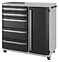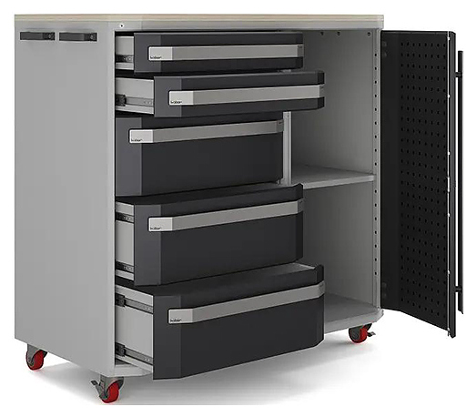 Тумба Кобор Expert TTF/2-100/64 2S.23B предназначена для хранения и транспортировки к рабочему месту инструментов и приборов, необходимых для работы на сервисных и слесарных участках, в цехах заводов и на промышленных предприятиях. Модель оснащена распашной дверью, 2 полками и 5 выдвижными ящиками, которые гарантируют комфортное использование и позволяют хранить необходимые инструменты и материалы на рабочем месте. Тумба имеет 4 поворотных колеса, обеспечивающих легкое перемещение по производственной зоне и стабильную фиксацию на месте. Корпус выполнен из металла с порошковым покрытием, устойчивым к механическим и химическим воздействиям, столешница - из ламинированной фанеры. Особенности:
