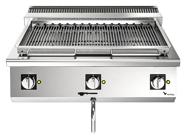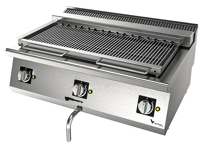 Гриль VITAL ESI6030 серии 600 предназначен для жарки мяса, птицы, рыбы и овощей на предприятиях общественного питания. Съемная V-образная варочная поверхность предотвращает попадание капель масла на нагревательные элементы, резервуар для воды под грилем минимизирует дым и запах, вызванные маслом. Закругленные края обеспечивают легкую чистку. Корпус и нагревательные элементы выполнены из нержавеющей стали. Особенности: