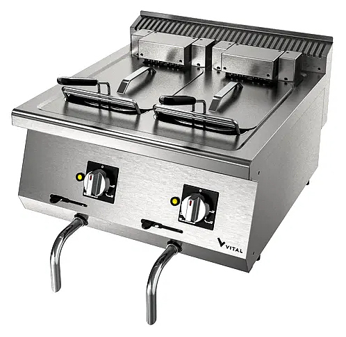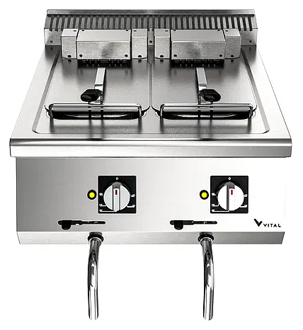 Фритюрница VITAL EFP6020 серии 600 предназначена для приготовления различных продуктов в большом количестве масла при высокой температуре на предприятиях общественного питания и торговли. Модель оснащена 2 ваннами с кранами для слива масла, предохранительным термостатом для предотвращения перегрева масла и подвижными нагревателями с предохранительными выключателями для очистки внутренней камеры. Закругленные углы рабочей поверхности обеспечивают легкую чистку. Корпус выполнен из нержавеющей стали. Особенности: