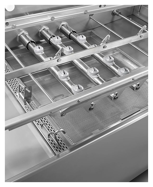 Туннельная посудомоечная машина Elframo ETE20 EL используется на предприятиях общественного питания для мойки котлов, гастроемкостей и кухонного инвентаря. Модель оснащена электромеханической панелью управления с 2 цифровыми дисплеями для наблюдения и контроля за температурой в бойлере и баке с цифровым терморегулятором. Корпус секции с двойными стенками выполнен из нержавеющей стали AISI 304, бак - из нержавеющей стали AISI 316, центральная направляющая, регулируемые и съемные разбрызгиватели - из нержавеющей стали для мойки и ополаскивания, бойлер - из пассивированной стали AISI 316. В комплект поставки входят корзины: универсальная, 2 для тарелок и 1 для подносов. Особенности: