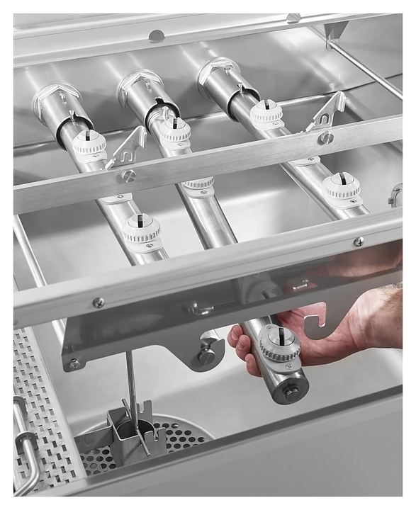 Туннельная посудомоечная машина Elframo ETE25 EL используется на предприятиях общественного питания для мойки котлов, гастроемкостей и кухонного инвентаря. Модель оснащена электромеханической панелью управления с 2 цифровыми дисплеями для наблюдения и контроля за температурой в бойлере и баке с цифровым терморегулятором. Корпус секции с двойными стенками выполнен из нержавеющей стали AISI 304, бак - из нержавеющей стали AISI 316, центральная направляющая, регулируемые и съемные разбрызгиватели - из нержавеющей стали для мойки и ополаскивания, бойлер - из пассивированной стали AISI 316. В комплект поставки входят корзины: универсальная, 2 для тарелок и 1 для подносов. Особенности: