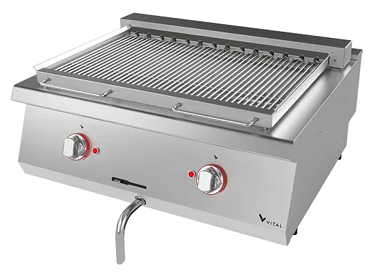 Гриль VITAL ESI7020 серии 700 предназначен для жарки мяса, птицы, рыбы и овощей на предприятиях общественного питания. Съемная V-образная варочная поверхность предотвращает попадание капель масла на нагревательные элементы, резервуар для воды под грилем минимизирует дым и запах, вызванные маслом. Закругленные края обеспечивают легкую чистку. Корпус и нагревательные элементы выполнены из нержавеющей стали. Особенности: