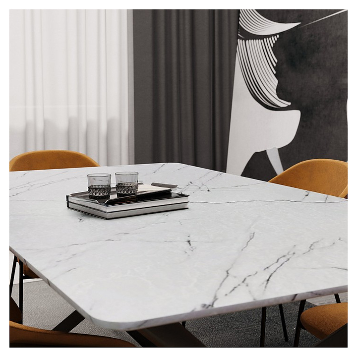 Обеденный стол Hesby Whispered Whirl используется для оформления интерьера на предприятиях общественного питания и в домашних условиях. Столешница выполнена из древесноволокнистой плиты средней плотности (МДФ) с влагостойкой матовой поверхностью под камень в светло-серых тонах, подстолье – из металлического профиля прямоугольного сечения с покрытием черного цвета. В комплект поставки входят 6-гранный ключ, крепеж и инструкция по сборке. Особенности: