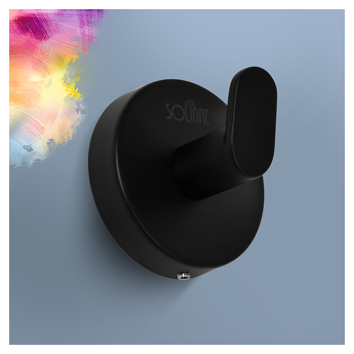 Крючок Puff Solinne 2536.320 Вальс используется для размещения полотенец и других навесных принадлежностей в ванной комнате или кухне. Лимитированная коллекция Вальс представляет элегантные аксессуры в стиле минимализм. Модель оснащена уплощенным одинарным зацепом и креплением цилиндрической формы. Изделие выполнено из стали марки 304 с матовым покрытием порошковой краской черного цвета, упаковка – картонная коробка. Комплектация: