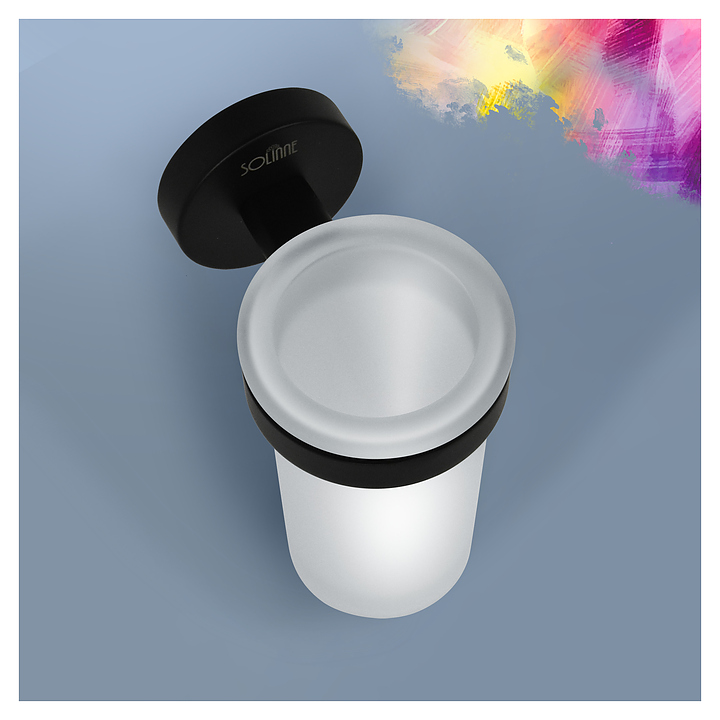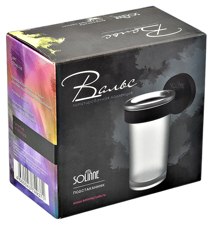 Подстаканник Puff Solinne 2546.148 Вальс используется для компактного размещения зубных щеток и аналогичных принадлежностей в ванной комнате. Лимитированная коллекция Вальс представляет элегантные аксессуры в стиле минимализм. Модель состоит из одинарного кольцеобразного держателя с цилиндрическим креплением и съемного стакана круглого сечения. Держатель выполнен из стали марки 304 с матовым покрытием порошковой краской черного цвета, стакан – из полупрозрачного матового стекла, упаковка – картонная коробка. Комплектация: