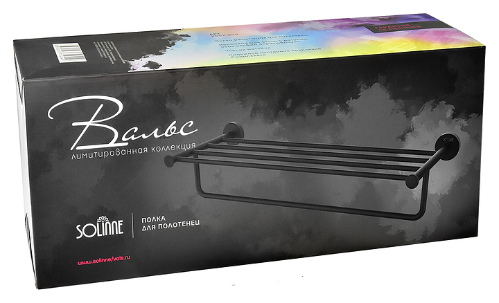 Полка Puff Solinne 2552.393 Вальс используется для размещения полотенец в ванной комнате. Лимитированная коллекция Вальс представляет элегантные аксессуры в стиле минимализм. Модель прямоугольной формы оснащена горизонтальной решетчатой секцией, нижним рейлингом для навесного хранения и 2 цилиндрическими держателями. Изделие выполнено из стали марки 304 с матовым покрытием порошковой краской черного цвета, упаковка – картонная коробка. Комплектация: