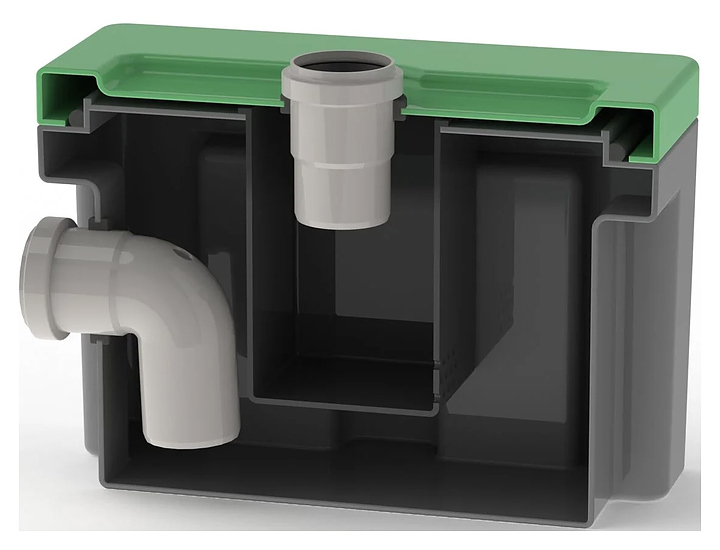 Жироуловитель COUNTRY PLAST EXPERT 40 предназначен для очистки сточных вод от жиров растительного и животного происхождения и предотвращения их попадания в систему канализации с целью предупреждения образования засоров в кафе, ресторанах, столовых, на других предприятиях общественного питания и торговли. Модель оснащена съемной камерой. Корпус выполнен из прочного пластика, устойчивого к химическим веществам. Особенности: