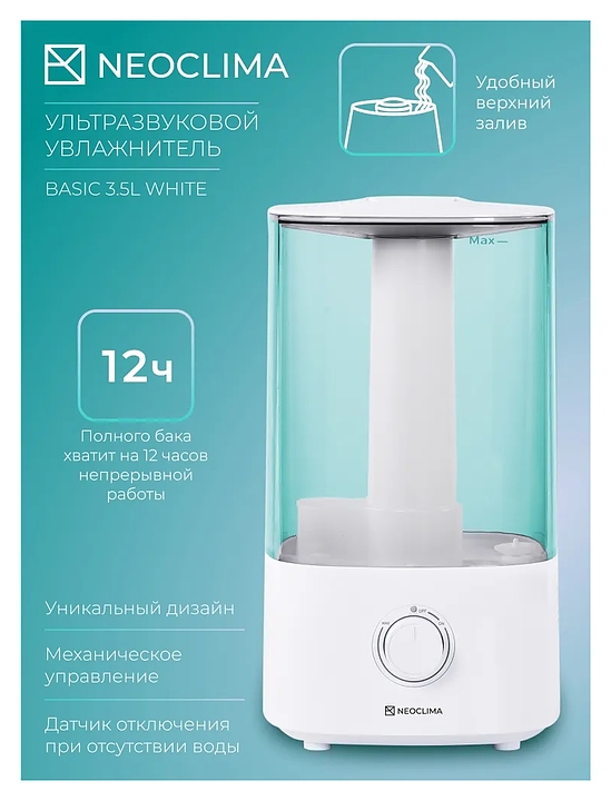 Увлажнитель воздуха ультразвуковой Neoclima BASIC 3.5L White белый