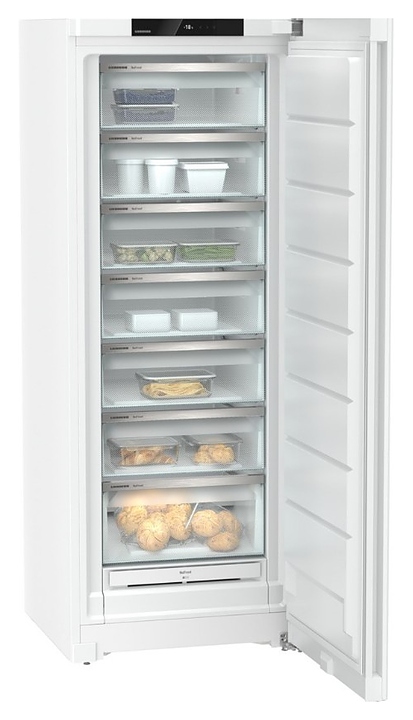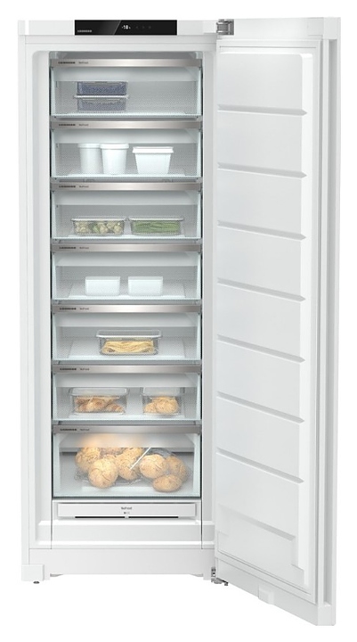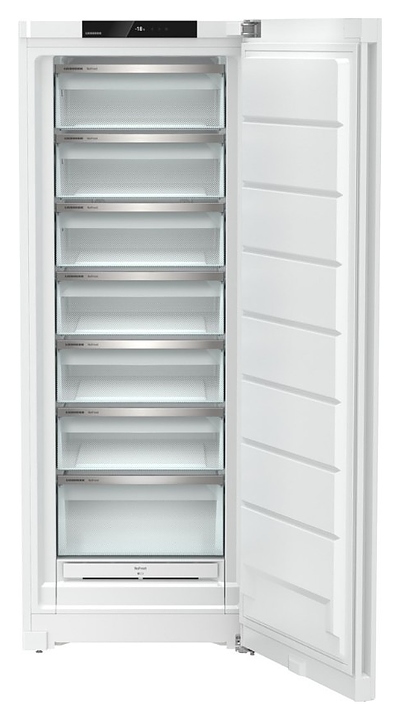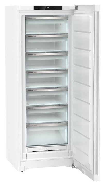 Морозильник Liebherr FNd 7227 серии Plus предназначен для охлаждения, замораживания, кратковременного и длительного хранения пищевых продуктов и напитков в гостиничных комплексах, офисах, а также домашних условиях. Модель оснащена морозильной камерой с правосторонней перенавешиваемой распашной дверью, кабелем питания с евровилкой, расположенными за дверью в верхней части фронта сенсорной панелью управления и монохромным жидкокристаллическим дисплеем с белой подсветкой индикации. Боковины и фасад двери выполнены из стали с лакированным антикоррозийным покрытием белого цвета, внутренняя облицовка камеры – из белого пластика, ящики – из белого пластика с прозрачным фронтом и окантовками серебристого оттенка, упаковка – из гофрокартона, полимерной пленки и полистирола.