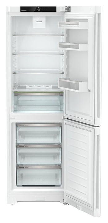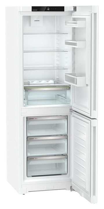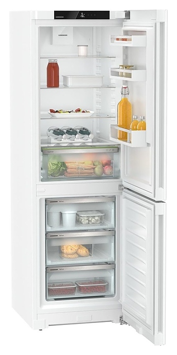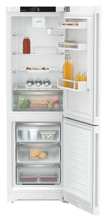 Холодильник Liebherr CNf 5203 серии Pure предназначен для охлаждения, замораживания, кратковременного и длительного хранения пищевых продуктов и напитков в гостиничных комплексах, офисах, а также домашних условиях. Модель оснащена холодильной камерой сверху и морозильной камерой снизу, правосторонними перенавешиваемыми распашными дверьми, кабелем питания с евровилкой, расположенными за дверью холодильной камеры в верхней части фронта сенсорной панелью управления и монохромным жидкокристаллическим дисплеем с белой подсветкой индикации. Фасад дверей и боковины выполнены из стали лакированным антикоррозийным покрытием белого цвета, внутренняя облицовка камер – из белого пластика, плоские полки – из прозрачного закаленного стекла, навесные полки и ящики – из белого пластика с прозрачным фронтом, ящики и полки декорированы окантовками серебристого оттенка, упаковка – из гофрокартона, полимерной пленки и полистирола.