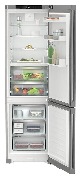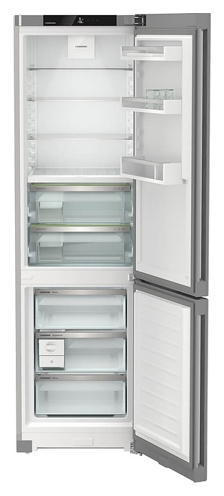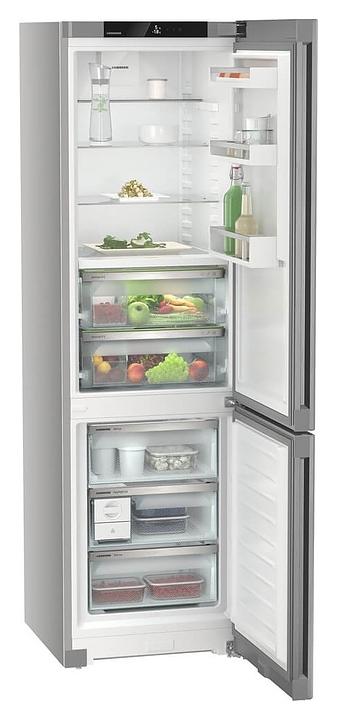 Холодильник Liebherr CBNsfc 57vi серии Plus предназначен для охлаждения, замораживания, кратковременного и длительного хранения пищевых продуктов и напитков в гостиничных комплексах, офисах, а также домашних условиях. Модель оснащена холодильной камерой сверху и морозильной камерой снизу, правосторонними перенавешиваемыми распашными дверьми, кабелем питания с евровилкой, расположенными за дверью холодильной камеры в верхней части фронта сенсорной панелью управления и монохромным жидкокристаллическим дисплеем с белой подсветкой индикации. Фасад двери выполнен из материала Colaminat с вертикальным крацеванием поверхности SteelFinish под нержавеющую сталь серебристого оттенка, боковины – из стали с лакированным антикоррозийным покрытием в тон фасада, внутренняя облицовка камер – из белого пластика, плоские полки – из прозрачного закаленного стекла, ящики и навесные полки – из белого пластика с прозрачным фронтом, ящики и полки декорированы окантовками серебристого оттенка, сухая задняя панель – из пластика, упаковка – из гофрокартона, полимерной пленки и полистирола.