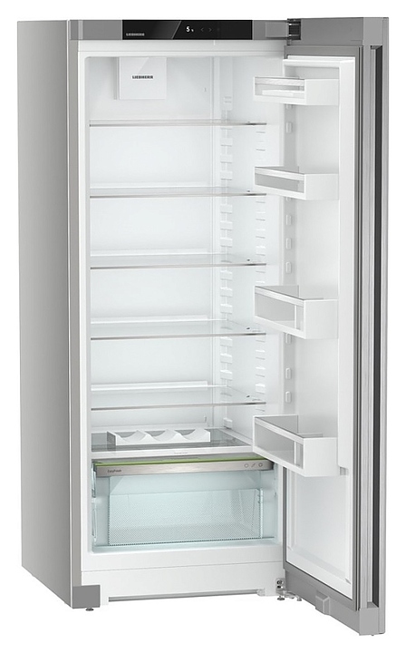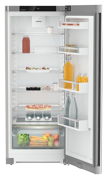 Холодильник Liebherr Rsfd 4600 серии Pure предназначен для охлаждения, кратковременного и длительного хранения пищевых продуктов и напитков в гостиничных комплексах, офисах, а также домашних условиях. Модель оснащена холодильной камерой c правосторонней перенавешиваемой распашной дверью, кабелем питания с евровилкой, расположенными за дверью в верхней части фронта сенсорной панелью управления и монохромным жидкокристаллическим дисплеем с белой подсветкой индикации. Фасад двери выполнен из материала Colaminat с вертикальным крацеванием поверхности SteelFinish под нержавеющую сталь серебристого оттенка, боковины – из стали с лакированным покрытием в тон фасада, внутренняя облицовка камеры – из белого пластика, плоские полки – из прозрачного закаленного стекла, навесные полки и ящик – из белого пластика с прозрачным фронтом, ящик и полки декорированы металлическими окантовками серебристого оттенка, упаковка – из гофрокартона, полимерной пленки и полистирола.