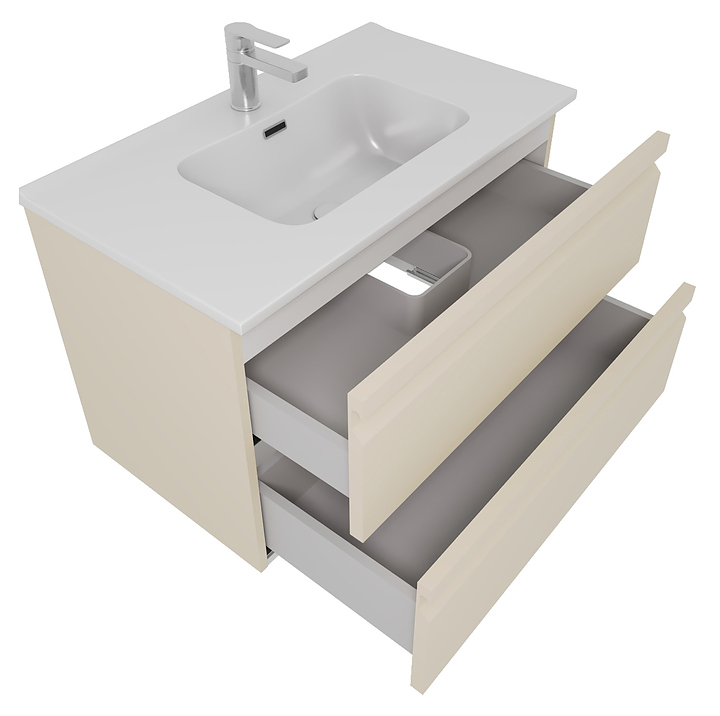 Тумба под раковину Aquatek Вега AQ77080-LC дополнит интерьер любой ванной комнаты. Благодаря подвесной конструкции модель не занимает много места и облегчает уборку. Тумба оснащена 2 выдвижными ящиками с доводчиком GTV для плавного скольжения и мягкого закрывания. Боковые поверхности раковины обеспечивают дополнительное пространство для хранения и размещения аксессуаров для ванной. Корпус выполнен из окрашенной ЛДСП Эггер, фасад - из окрашенной ЛМДФ Эггер, ограждение сифона - из пластика, раковина - из санфарфора, который обладает повышенной прочностью и устойчивостью к негативным внешним факторам, а также долгое время сохраняет идеальную белизну и не впитывает запахи и грязь. В комплект поставки входят тумба AQ70080-LC, раковина AQ0480-00, декоративная накладка на отверстие перелива, крепеж и подвесы. Донный клапан и смеситель в комплект поставки не входят. Особенности: