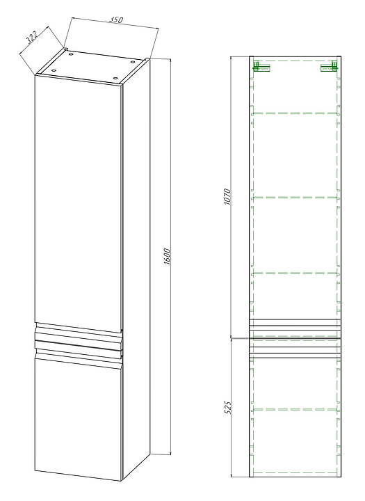 Шкаф-пенал Aquatek Вега AQ70035R-GS 35 см, правый