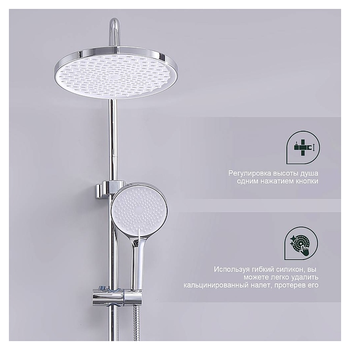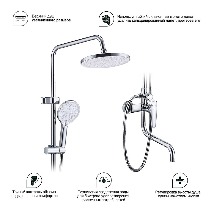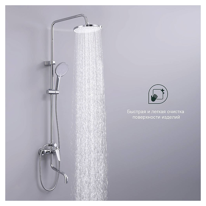 Душевая система Splenka S51.24 предназначена для подачи горячей и холодной воды в ванных помещениях. Модель оснащена круглыми верхним душем и ручной лейкой. Керамический картридж обеспечивает плавный ход рычага смесителя, контроль и точность при выборе напора и температуры воды. Аэратор создает мягкую струю без брызг. Изделие выполнено из латуни, шланг - из ПВХ. В комплект поставки входят верхний душ, душевая штанга с держателем лейки, ручной душ, смеситель и шланг. Особенности: